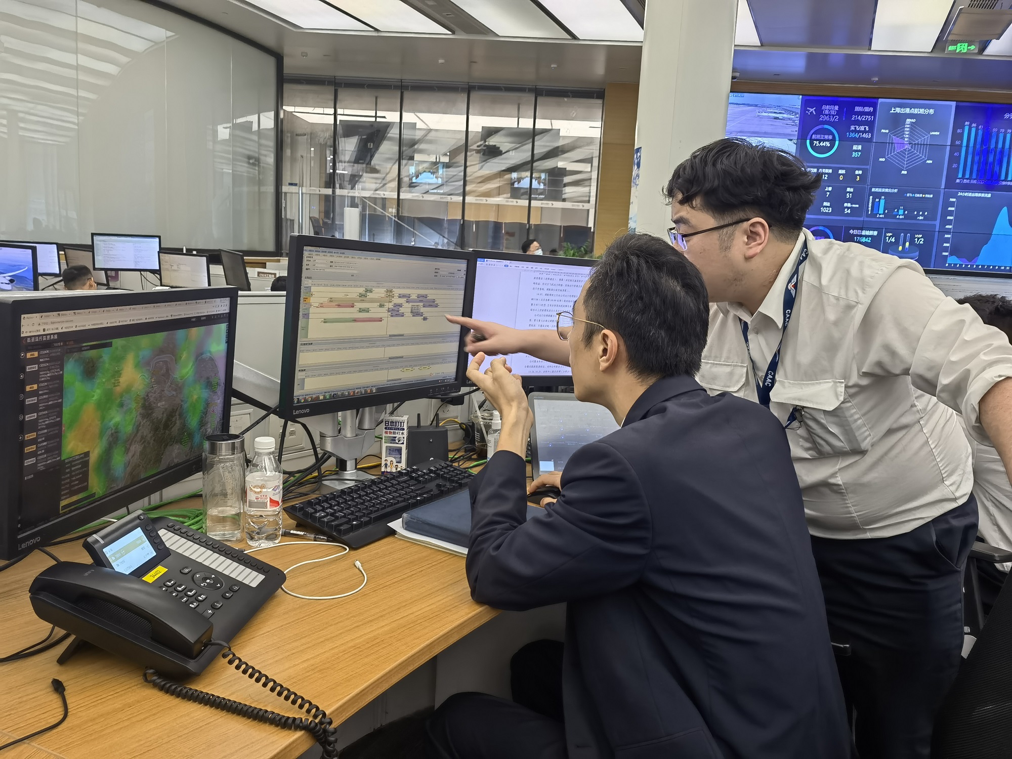 旺季的航班生產量大,夏季各種臺風、雷雨等惡劣天氣發(fā)生頻率又高,再加上航班運行容易受到流控等方方面面的影響,不正常航班和應急事件會比日常多。這時,東指中心的存在就猶如一個“CPU”,對各種情況進行分析、預案、決策,同時協(xié)調、指揮著各專業(yè)崗位“分工合力、齊頭并進”,好讓數千個航班有序運行。