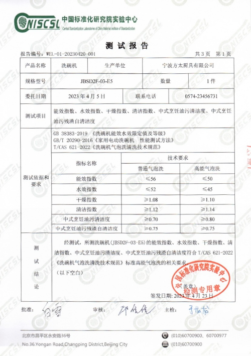 2022年,方太聯(lián)合中國家用電器研究院發(fā)布首個《洗碗機氣泡洗清洗技術(shù)規(guī)范》,此次舉辦的媒體溝通會上,方太水槽洗碗機新5系又通過了中國標準化研究院完成技術(shù)驗證,經(jīng)由嚴苛的技術(shù)測試和實效檢驗,測試結(jié)果最終為,能效指數(shù)50、水效指數(shù)45、干燥指數(shù)1.29、清潔指數(shù)1.24、中式烹飪油污清潔度0.87、中式烹飪油污殘渣自清潔度0.77,各項指標均符合要求,其中干燥指數(shù)、清潔指數(shù)均高于國家一級水效標準基數(shù),且對中式烹飪油污的清潔效果顯著。