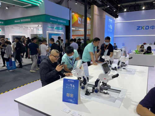 2023年4月21日至23日,為期三天的“第81屆中國教育裝備展示會(huì)”在物華天寶人杰地靈的英雄城南昌隆重舉行。本屆展示會(huì)由中國教育裝備行業(yè)協(xié)會(huì)主辦、江西省教育廳和南昌市人民政府承辦、各省(區(qū)、市)及計(jì)劃單列市教育裝備行業(yè)協(xié)會(huì)協(xié)辦。展示會(huì)的主題為“數(shù)字賦能教育、創(chuàng)新引領(lǐng)未來”,共吸引了海內(nèi)外1400多家企業(yè)參展,展位數(shù)量11117個(gè),展覽面積達(dá)21萬平方米,再創(chuàng)規(guī)模新高,成為全球教育裝備行業(yè)規(guī)模最大的展會(huì)。展會(huì)期間,中科達(dá)展位氣氛熱烈,觀眾云集,下面我們就帶著大家回顧一下本屆展會(huì)的一些精彩瞬間。
