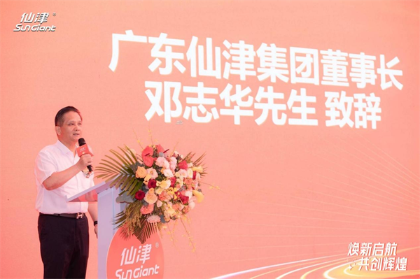 伴隨現(xiàn)場熱烈的掌聲,廣東仙津集團有限公司董事長鄧志華先生規(guī)劃著企業(yè)發(fā)展的新藍圖。“值此集團喬遷的重要節(jié)點,仙津集團將繼續(xù)攜手以匠心堅守品質(zhì),以智慧賦能發(fā)展,助力行業(yè)智變向新。今年,我們提出了百億級的發(fā)展目標,預(yù)示著我們要朝著更高的目標攀登。仙津歷經(jīng)38年風雨,蛻變成長為飲料食品行業(yè)中的佼佼者、食品加工制造業(yè)領(lǐng)域的優(yōu)秀品牌,離不開眾多經(jīng)銷商朋友、合作伙伴的鼎力支持。在喬遷新基之際,仙津集團將立足新起點,實現(xiàn)新高度,為集團的蓬勃發(fā)展開啟全新征程?!?/p>