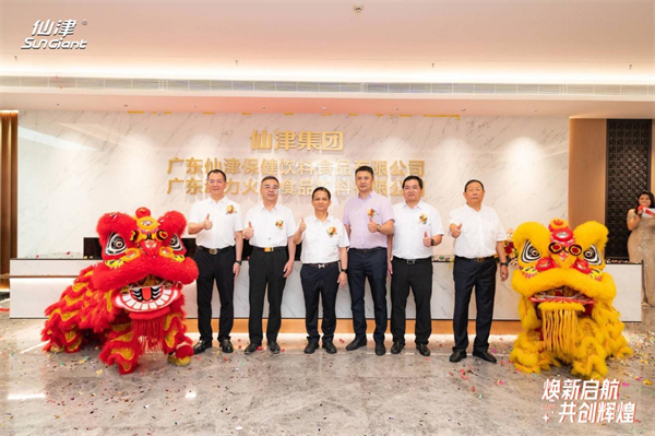 在瑞獅吐福的喜慶氣氛中,政府及行業(yè)各界嘉賓與仙津集團領(lǐng)導(dǎo)高層,移步至揭牌儀式區(qū),松山湖黨工委委員、管委會委員黃鏡銓、松山湖管委會總經(jīng)濟師兼北部片區(qū)黨委書記陳潮暉、中國食品工業(yè)協(xié)會顧問張俊修、東莞市工商聯(lián)主席黃建平、東莞市上市公司協(xié)會會長林海川,廣東仙津集團有限公司董事長鄧志華共同為仙津集團揭牌,標志著仙津集團拉開嶄新序幕,走向全新征程!