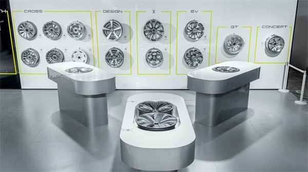 現(xiàn)場(chǎng)還展示了PLAY.STH的5個(gè)系列13款輪轂,分別為CROSS系列、X系列、GT系列、DES!GN系列、EV系列等,多款造型適配不同用車場(chǎng)景。這5個(gè)系列輪轂均為6061-T6 鋁合金材質(zhì)的鍛造輪轂,結(jié)構(gòu)強(qiáng)度高,成品輕量化。據(jù)了解,其中的CR01\CR02\CR03 款是國內(nèi)首批獲得 LM 認(rèn)證的輪轂,PLAY.STH所有輪轂產(chǎn)品在上市前均會(huì)主動(dòng)完成車輪沖擊性能試驗(yàn)、車輪動(dòng)態(tài)彎曲疲勞性能試驗(yàn)、車輪動(dòng)態(tài)徑向疲勞性能試驗(yàn)等輪轂三大安全性能試驗(yàn),漆膜品控堅(jiān)持更高要求的車規(guī)級(jí)標(biāo)準(zhǔn)。內(nèi)部輪轂及整車設(shè)計(jì)團(tuán)隊(duì)溝通配合,確保產(chǎn)品在造型出眾的同時(shí),滿足安全可靠的基本要求。