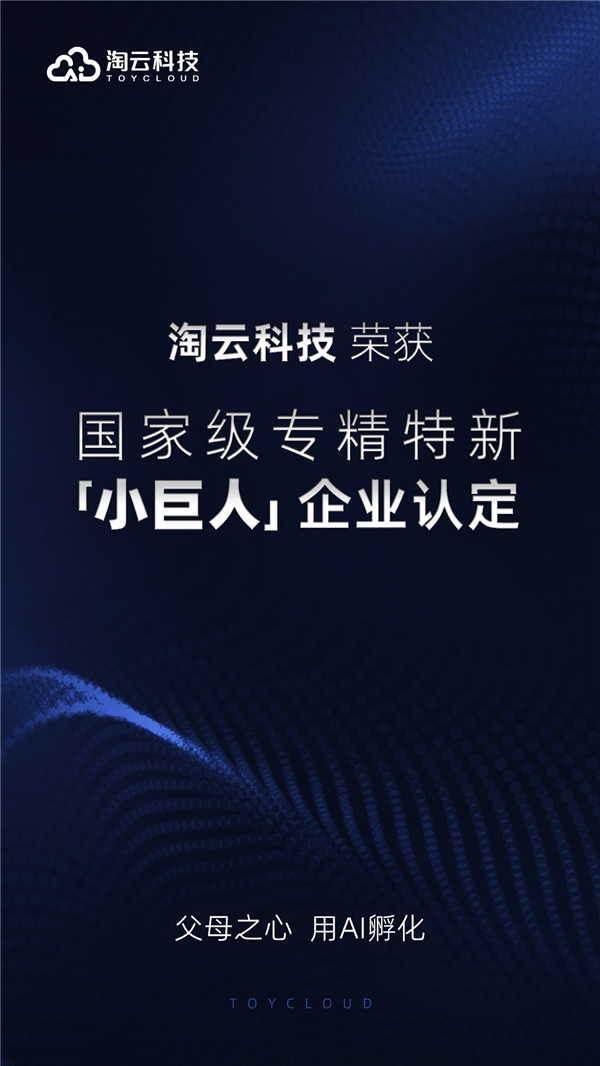 本次淘云科技被認(rèn)定為第五批國(guó)家級(jí)“專精特新”小巨人企業(yè),是工信部對(duì)淘云科技在“AI+兒童”領(lǐng)域的研發(fā)實(shí)力和創(chuàng)新能力的肯定。此次獲獎(jiǎng)有助于淘云科技持續(xù)拓展兒童人工智能核心技術(shù),不斷提高產(chǎn)品核心競(jìng)爭(zhēng)力,提升品牌知名度,助力淘云科技的高質(zhì)量發(fā)展之路越走越寬。
