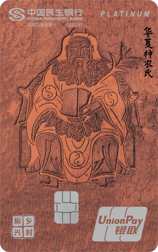 該卡首次采用民生銀行定點幫扶縣——河南省滑縣國家級非遺木版年畫為版面,卡面以華夏神農(nóng)氏為主形象,形象地描繪出農(nóng)耕文化和民族風(fēng)情,展現(xiàn)了中華傳統(tǒng)美術(shù)工藝,為金融機(jī)構(gòu)助力鄉(xiāng)村振興又添碩果。