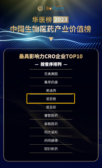 2023年6月29-30日,第九屆中國生物醫(yī)藥創(chuàng)新合作大會(BIO-PHARM2023)暨華醫(yī)榜2023中國生物醫(yī)藥產業(yè)價值榜頒獎盛典于蘇州盛大開幕,諾思格(北京)醫(yī)藥科技股份有限公司(以下簡稱“諾思格”)作為根植中國,服務全球的全流程合同研究組織,以優(yōu)質的服務和十五年來良好的口碑,榮獲“最具影響力CRO企業(yè)TOP10”,諾思格高級運營總監(jiān)喬宇航先生出席會議并領取該獎項。