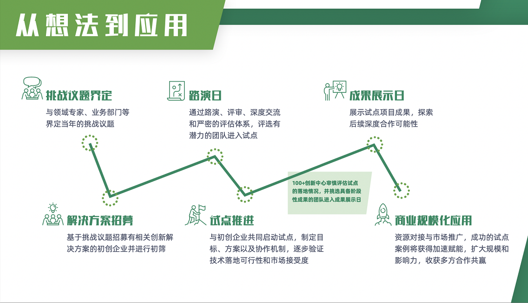 今年,“100+創(chuàng)新中心”將在廣度和深度上實(shí)現(xiàn)全面提升,以本地為中心,放眼全球,以更開(kāi)放的姿態(tài)邀請(qǐng)更多品牌方、投資人和行業(yè)伙伴加入,賦能更多有潛力的創(chuàng)新創(chuàng)業(yè)解決方案落地 。在這個(gè)過(guò)程中,你的收獲遠(yuǎn)不止于此: