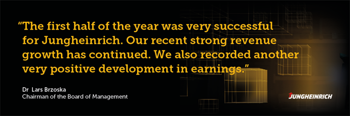 永恒力集團(tuán)董事會(huì)主席Lars Brzoska博士解釋道:“今年上半年對(duì)永恒力而言可謂碩果累累。我們延續(xù)了近期營(yíng)業(yè)收入強(qiáng)勁增長(zhǎng)的勢(shì)頭。增幅達(dá)到了46%,我們?cè)谟矫嬖俅螌?shí)現(xiàn)了極為喜人的增長(zhǎng)。通過收購Storage Solutions集團(tuán),我們?cè)诿绹?guó)貨架系統(tǒng)和倉儲(chǔ)自動(dòng)化領(lǐng)域贏得了一個(gè)重要的增長(zhǎng)點(diǎn)。這一點(diǎn)目前已首次體現(xiàn)在集團(tuán)的合并財(cái)務(wù)報(bào)表內(nèi)。我們繼續(xù)推進(jìn)實(shí)施2025+戰(zhàn)略,并確認(rèn)本年度的預(yù)測(cè)數(shù)據(jù)。永恒力已經(jīng)為迎接未來做好了充分的準(zhǔn)備。”
