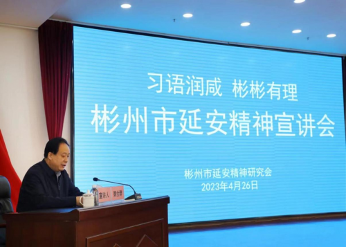 “習(xí)語(yǔ)潤(rùn)咸,彬彬有理”彬州市延安精神宣講會(huì)按照省、市延安精神研究會(huì)的總體部署和彬州市委、市政府的要求,進(jìn)機(jī)關(guān)、進(jìn)企業(yè)、進(jìn)學(xué)校、進(jìn)農(nóng)村、進(jìn)社區(qū)、進(jìn)網(wǎng)站開(kāi)展活動(dòng)。2023年4月26日,會(huì)長(zhǎng)魏全群同志帶領(lǐng)彬州市延安精神研究會(huì)理事成員赴文家坡煤礦進(jìn)行延安精神宣講報(bào)告會(huì)。宣講報(bào)告會(huì)在文家坡煤礦綜合樓三樓會(huì)議室舉辦,由工信局副局長(zhǎng)齊靜同志主持,魏全群會(huì)長(zhǎng)主講。宣講內(nèi)容以延安精神的基本內(nèi)容、形成歷史、傳承的意義分為三部分來(lái)一一講述。