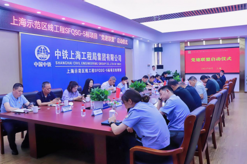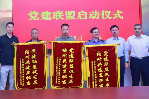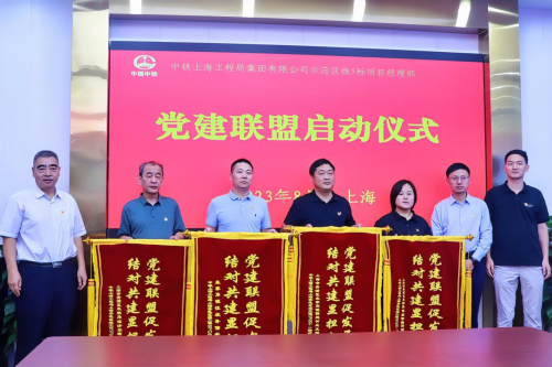 啟動儀式現(xiàn)場,青浦區(qū)朱家角鎮(zhèn)黨委委員王磊,中鐵上海工程局集團(tuán)有限公司城建分公司黨委副書記、工會主席張文續(xù),上海申鐵投資有限公司項目經(jīng)理何喬石現(xiàn)場為各聯(lián)建單位授予“黨建聯(lián)盟促發(fā)展,結(jié)對共建顯擔(dān)當(dāng)”錦旗,并共同見證上海示范區(qū)線5標(biāo)項目部與各單位締結(jié)《黨建聯(lián)建協(xié)議書》。據(jù)了解,聯(lián)盟成立后,各聯(lián)建單位將相互交流黨建工作經(jīng)驗,共同開展黨建共建活動,通過推進(jìn)區(qū)域化黨建,盤活黨組織力量資源,實現(xiàn)黨建與生產(chǎn)深度融合,以高質(zhì)量黨建引領(lǐng)高質(zhì)量發(fā)展。