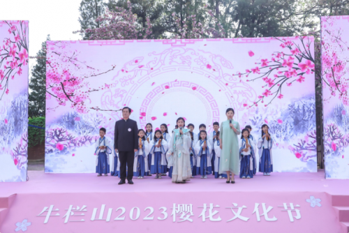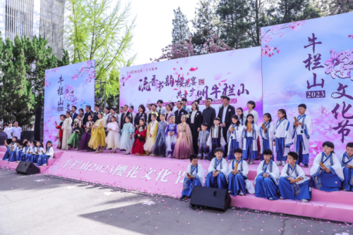 開(kāi)幕式在孩子們的朗朗讀書(shū)聲中緩緩拉開(kāi),一群少年身著漢服在朝陽(yáng)中誦讀《少年中國(guó)說(shuō)》、《水調(diào)歌頭》。牛欄山地區(qū)黨委書(shū)記姜惠琴在致辭時(shí)表示:“以櫻花為媒,舉辦此次櫻花節(jié)活動(dòng),以沉浸式場(chǎng)景演出,融入全民閱讀,文明創(chuàng)城等活動(dòng),相信能夠給大家?guī)?lái)一場(chǎng)文化盛宴,也將為順義區(qū)打造一個(gè)更加亮麗、持久的文化旅游城市名片?!?月23日,將迎來(lái)第28個(gè)世界讀書(shū)日。牛欄山作為全國(guó)文明鎮(zhèn),姜惠琴在此倡導(dǎo)大家多讀書(shū),讀好書(shū),以書(shū)為媒,為文明創(chuàng)城創(chuàng)建賦能添彩,讓全民閱讀之氣彌漫,讓文明在全社會(huì)蔚然成風(fēng)。