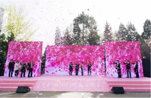 隨著領(lǐng)導(dǎo)嘉賓屏幕上印上掌紋,在高潮迭起的音樂(lè)和花瓣雨中,牛欄山2023櫻花文化節(jié)暨牛欄山鎮(zhèn)2023全民閱讀季、文明之約活動(dòng)正式啟動(dòng)。