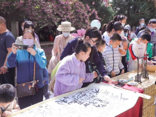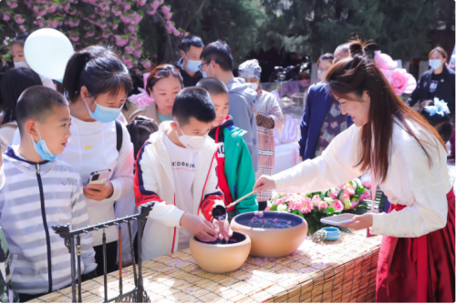 來(lái)賓們?cè)谫p櫻的同時(shí)紛紛錄制有聲明信片“我想對(duì)黨說(shuō)”,體驗(yàn)各式手作、風(fēng)箏制作、DIY團(tuán)扇制作、漢服秀等。“越羅衫袂迎春風(fēng),玉刻麒麟腰帶紅?!贝荷ㄏ?#xff0c;飄逸的裙裾、精致的簪花,中華傳統(tǒng)服飾之美與絢爛多姿的國(guó)潮風(fēng)交相輝映,在水墨香中感受漢字書(shū)法的魅力所在,在詩(shī)詞之美中,領(lǐng)略詩(shī)意人生的寫照、家國(guó)情懷的寄托,傳承詩(shī)詞文化,涵養(yǎng)民族精神。