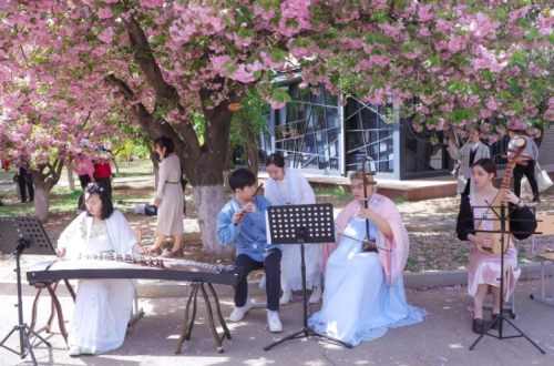 賞櫻線路上,櫻花大道內(nèi)一群青年大學(xué)生身懷技藝,各式才藝展演,民樂(lè)、古箏獨(dú)奏、管弦、鋼琴獨(dú)奏、快閃《愛(ài)出發(fā)》《花?!贰肚啻壕毩?xí)冊(cè)》《不得不愛(ài)》《后會(huì)無(wú)期》街舞、中國(guó)舞、樂(lè)隊(duì)青春活力,青年大學(xué)生校園科技文化展示區(qū)機(jī)器人展示、大賽作品及藏品展、模型沙盤互動(dòng)、環(huán)保、創(chuàng)城互動(dòng)區(qū)地球日主題、綠色農(nóng)業(yè)創(chuàng)城理念、經(jīng)濟(jì)普法知識(shí)互動(dòng),展示了當(dāng)代大學(xué)生的蓬勃的創(chuàng)新精神和社會(huì)責(zé)任感。