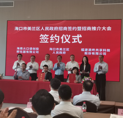 4月24日,海南省海口美蘭區(qū)人民政府招商推介暨簽約大會在??谂e行。此次活動是美蘭區(qū)主動出擊搶抓經(jīng)濟(jì)復(fù)蘇新機(jī)遇、新市場,全面激發(fā)轄區(qū)經(jīng)濟(jì)活力,打開美蘭政企合作新局面,呈現(xiàn)招商引資“走出去、引進(jìn)來”碩果的一次展示。福建滴咚共享科技股份有限公司受邀參加本次活動,總裁陳瑞娜作為代表出席。
