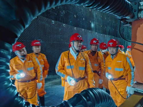 國(guó)家礦山安監(jiān)局黨組成員、副局長(zhǎng)周德昶參觀國(guó)家能源集團(tuán)上灣煤礦(劉國(guó)輝 攝)
