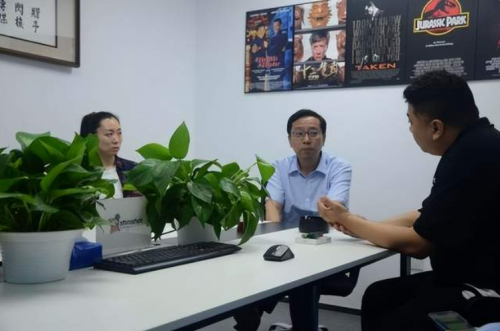 中國(guó)電影進(jìn)出口有限公司總經(jīng)理劉春先生認(rèn)真聽(tīng)取閃梭傳媒總裁南光(James Nan)先生匯報(bào)相關(guān)工作
