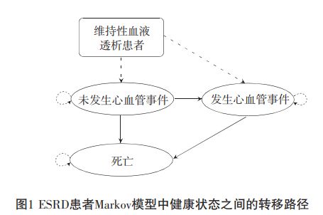 研究采用Markov模型法,將模型結構分為未發(fā)生心血管事件(NCVD)、發(fā)生心血管事件(CVD)、死亡(death)三個獨立狀態(tài),模擬接受常規(guī)血液凈化以及聯(lián)合HA樹脂血液灌流的ESRD患者疾病進程,計算接受不同治療方案患者的疾病成本與質(zhì)量調(diào)整壽命年(QALY)。模型循環(huán)周期為26周,研究時限為終生,評估不同治療方案患者的疾病成本與質(zhì)量調(diào)整壽命年。