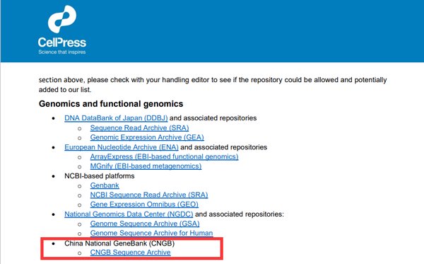 近日,國家基因庫序列歸檔系統(tǒng)(CNSA)被Cell Press(細(xì)胞出版社)推薦為基因組學(xué)和功能基因組學(xué)數(shù)據(jù)存儲庫。