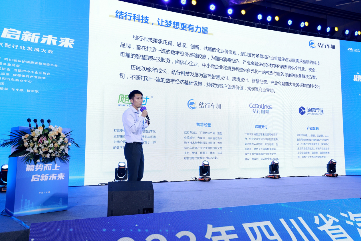 2023年6月11日,由四川省汽車汽配服務(wù)業(yè)商會(huì)主辦、豆秒好車集團(tuán)承辦的“2023年四川省汽車汽配行業(yè)發(fā)展大會(huì)”在成都隆重舉行,本次峰會(huì)以“鼎勢(shì)而上·啟新未來”為主題,廣邀800+車商和四川及全國(guó)汽車行業(yè)商協(xié)會(huì)、政府主管部門等相聚蓉城,共商行業(yè)的變革與機(jī)遇。結(jié)行科技旗下汽車資產(chǎn)數(shù)字化服務(wù)平臺(tái)結(jié)行車加也受邀參會(huì),副總經(jīng)理史云峰先生在會(huì)上做了精彩分享。