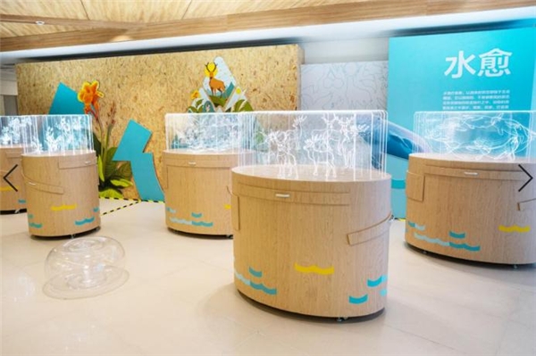 【流念】區(qū)域擺放了創(chuàng)意周邊,向公眾傳遞著善待水的理念