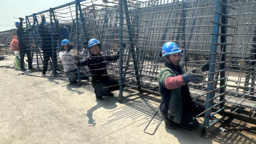 門吊機器轟鳴,工人們正忙著綁扎鋼筋、安裝模板、澆筑混凝土,濱淮高速BH7標項目施工現(xiàn)場一派忙碌景象?!拔逡弧奔倨?#xff0c;中鐵七局集團第三工程有限公司260余名建設(shè)者奮戰(zhàn)在施工一線,為了加快施工生產(chǎn)進度,現(xiàn)場工人們頂著灼灼烈日正如火如荼、緊鑼密鼓的掀起一番大干的施工熱潮。他們堅守崗位、默默奉獻,用勞動者最美的身影為自己的節(jié)日增添色彩。