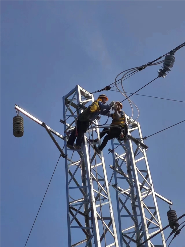 自工程開工以來,工程管理室精心組織,科學(xué)安排。由于該施工地點(diǎn)位于包公大道上跨橋,包公大道作為合肥東西交通主干道,大大加深了此次施工的難度,為此項(xiàng)目負(fù)責(zé)人多次進(jìn)行現(xiàn)場(chǎng)勘查、積極與當(dāng)?shù)亟煌ú块T聯(lián)系,提前編制道路臨時(shí)防護(hù)方案,雙支供電線僅10分鐘便完成架設(shè),安全高效的完成了施工任務(wù)。