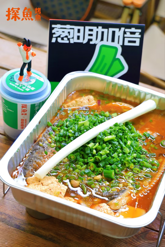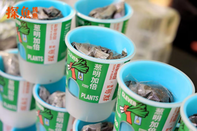 在產(chǎn)品研發(fā)上,探魚也充分考慮了顧客在感官、味覺、互動(dòng)等多方面的場景體驗(yàn),最新推出的“鮮青椒蔥蔥烤魚”就充分體現(xiàn)了這一點(diǎn)。鮮青椒蔥蔥烤魚在創(chuàng)新理念上,是探魚招牌口味“鮮青椒爽麻烤魚”口味的味型升級,在藤椒口味的基礎(chǔ)上增加時(shí)令性的蔥香風(fēng)味,一經(jīng)推出,就頗受大眾喜愛。據(jù)悉,新品上市7天,已經(jīng)比去年同期上新的烤魚銷量上漲105%。在產(chǎn)品呈現(xiàn)上,新品上餐時(shí)配上一整棵鮮甜大蔥,然后由服務(wù)人員現(xiàn)場進(jìn)行“剪蔥儀式”,將蔥段下入鍋內(nèi),提味增香,同時(shí)為消費(fèi)者營造一種新奇特的體驗(yàn)感。除此之外,探魚借勢本次上新,與最近大熱的植物品牌“超級植物公司”聯(lián)名推出可以種出小蔥的“蔥明種子卡”,不僅深化蔥的產(chǎn)品主題,還收獲了目標(biāo)客群“打工人”的情感共鳴。