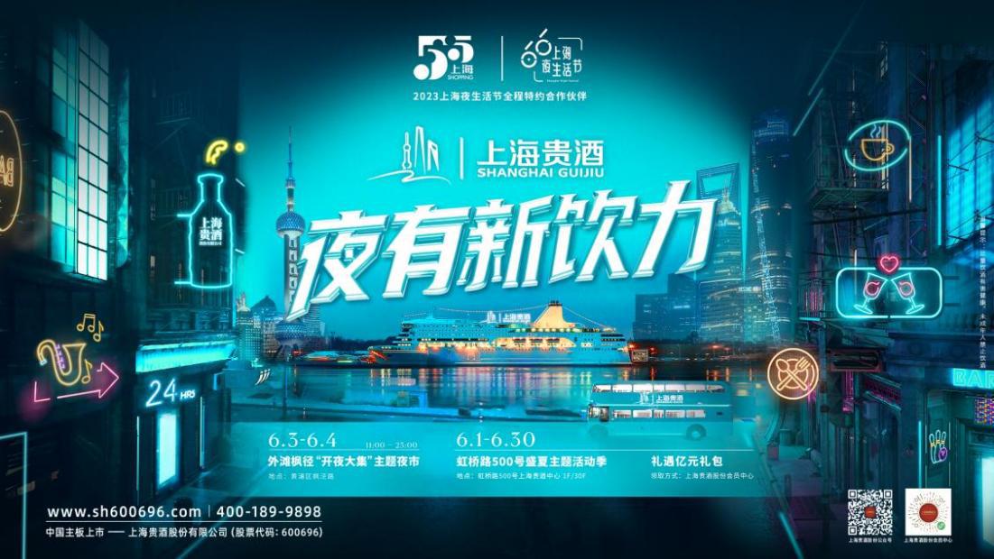 “2023上海夜生活節(jié)”將于明天正式拉開帷幕,上海貴酒作為“2023上海夜生活節(jié)”的全程特約合作伙伴,持續(xù)聚焦創(chuàng)新消費(fèi)業(yè)態(tài)模式,深度參與消費(fèi)復(fù)蘇,發(fā)放價(jià)值3億優(yōu)惠券,聯(lián)合百家餐飲創(chuàng)新消費(fèi)體驗(yàn),打造虹橋路500號(hào)上海消費(fèi)新地標(biāo),通過推出驚喜不斷的“夜有新飲力”主題活動(dòng),引領(lǐng)消費(fèi)升級(jí),激活消費(fèi)創(chuàng)新,打造上海新名片。