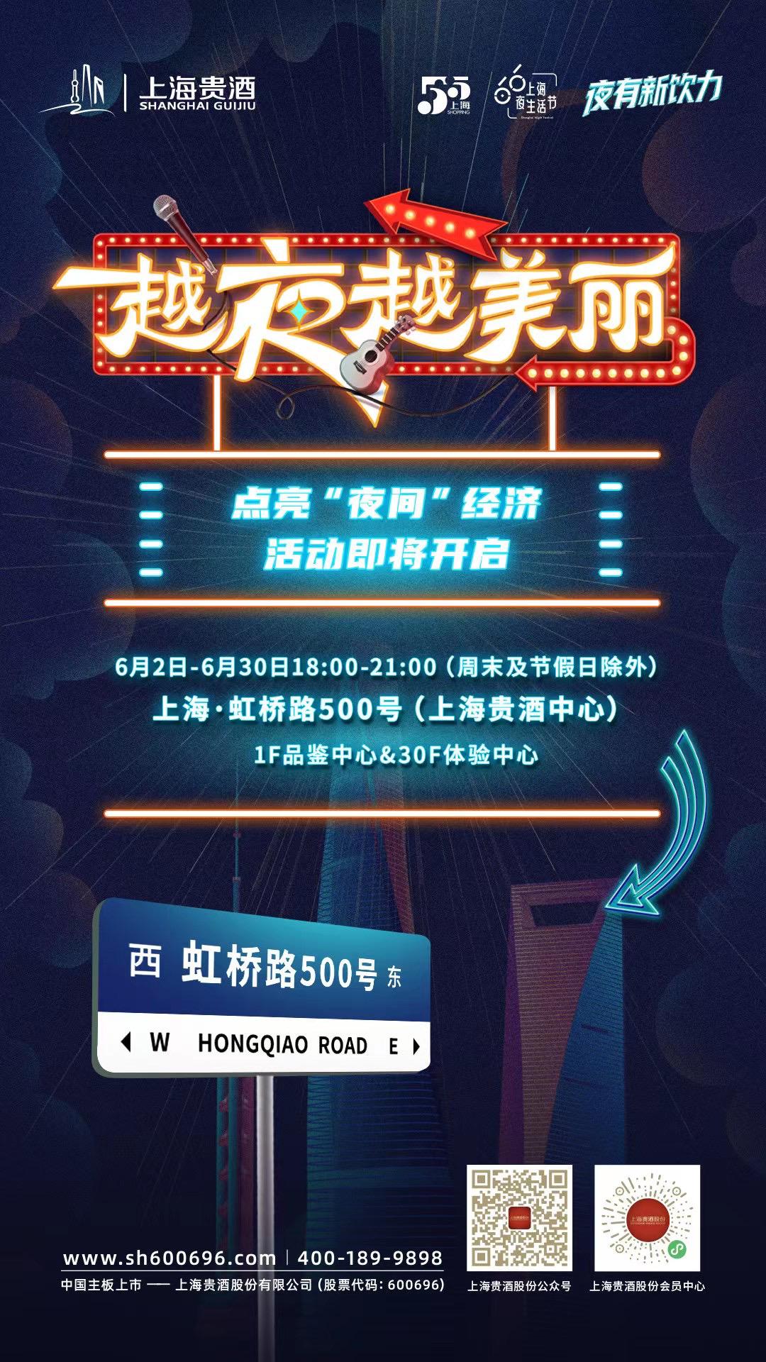 上海貴酒創(chuàng)新策劃的“虹橋路500號(hào)越夜越美麗”點(diǎn)亮“夜間”經(jīng)濟(jì)系列活動(dòng)也將從6月2日啟幕,橫跨整個(gè)6月,邀請(qǐng)品牌摯友齊聚虹橋路500號(hào)——上海貴酒徐匯品鑒中心和體驗(yàn)中心,點(diǎn)亮商圈潮流新“夜”態(tài),“飲”燃消費(fèi)新活力。從沉浸品鑒、花式特調(diào)到音樂、美食、青春街舞、房車生活,上海貴酒不斷打破創(chuàng)新邊界,將上海精神和品牌元素融入活動(dòng)設(shè)計(jì)中,打造出更高品質(zhì)、差異化的夜間消費(fèi)場(chǎng)景,在夜色中點(diǎn)亮城市文化名片,讓魔都“越夜越美麗”!