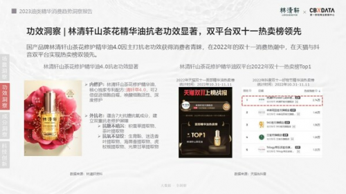 值得注意的是,這也是繼2022年雙十一、2023年3·8煥新周之后,林清軒山茶花精華油三度蟬聯(lián)天貓品類熱賣第一。至此,林清軒又一次用銷量和殺出外資品牌重重包圍的排名,強(qiáng)勢宣告了品牌的硬核實(shí)力。