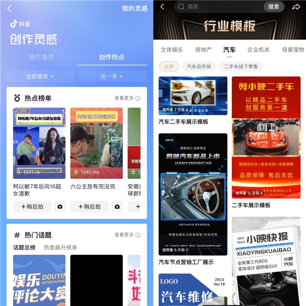 關注剪映剪同款熱榜,將熱門音樂和文案與汽車內容相結合,以創(chuàng)造出引人注目的效果。