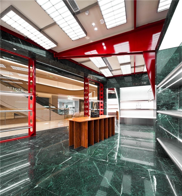 在對門店的設計上GROTTO個樂也采用了大膽的撞色設計。以品牌常用的綠色為設計基礎,與代表著重慶熱辣的紅色相融合。GROTTO個樂主理人黃糊糊說:“這一次我們將重慶火鍋的概念與GROTTO個樂自然的理念進行結合,我們初次的嘗試也希望能夠展現(xiàn)GROTTO個樂自由的個性,以及我們對重慶這座城市的重視。”GROTTO個樂相關工作人員蔡美穎表示認為:“重慶特別的個性在影響著我們門店裝置,這是一種積極而自由的相互影響,我們也期待GROTTO個樂會在重慶這座城市有著更好的市場表現(xiàn)。”
