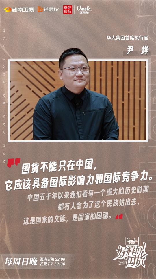國貨消費熱潮高漲,既有中國智造的底氣,也有文化積淀的自信。正如華大集團首席執(zhí)行官尹燁老師表示“國貨不能只在中國,它應該具備國際影響力和國際競爭力。中國五千年以來我們看每一個重大的歷史時期,都有人會為了這個民族站出去,這是國家的文脈,是國家的國魂。”
