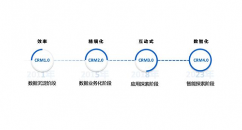 南訊向36氪展示了產(chǎn)品和服務(wù)的迭代升級,作為助力品牌連接用戶的紐帶,在不斷進化的十三年時間里,南訊圍繞ToC領(lǐng)域CRM的進化過程,將CRM從1.0到4.0總結(jié)為:數(shù)據(jù)沉淀階段、數(shù)據(jù)業(yè)務(wù)化階段、應(yīng)用探索階段、智能探索階段,并且提煉出了4個發(fā)展階段的核心要點:效率、精細(xì)化、互動式、數(shù)智化。