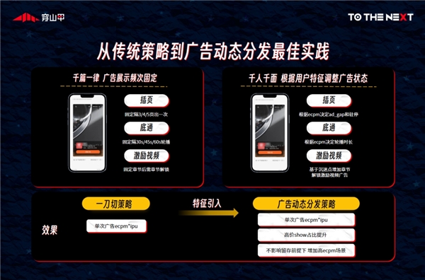 ▎閱讀行業(yè):?為避免過(guò)往千篇一律的廣告展示影響用戶(hù)體驗(yàn),穿山甲基于GroMore獨(dú)特的用戶(hù)價(jià)值分組能力,借助用戶(hù)所看書(shū)籍類(lèi)型、閱讀速度、在線時(shí)長(zhǎng)、累計(jì)觀看廣告數(shù)量等不同參數(shù),為開(kāi)發(fā)者建立了一套用戶(hù)分層策略。通過(guò)“廣告動(dòng)態(tài)分發(fā)”,根據(jù)用戶(hù)特征及時(shí)調(diào)整廣告狀態(tài),在不影響用戶(hù)留存的情況下進(jìn)一步提升廣告arpu,實(shí)現(xiàn)LTV最大化。