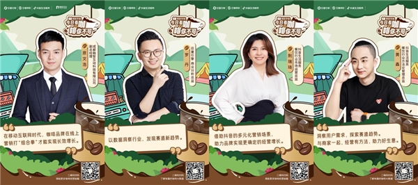 為此《算數(shù)學(xué)堂》重磅推出《今日有咖·啡你不可》欄目,聚焦咖啡賽道,為品牌商家們指點(diǎn)迷津,并邀請(qǐng)了8位重磅嘉賓,專(zhuān)業(yè)覆蓋咖啡生態(tài)各個(gè)環(huán)節(jié),包括消費(fèi)行業(yè)專(zhuān)家2位、咖啡品牌商家代表2家、品牌代理服務(wù)商1家、抖音生活服務(wù)專(zhuān)家2位、巨量引擎商業(yè)分析1位,他們將分別從各自的領(lǐng)域出發(fā),分享有關(guān)咖啡行業(yè)未來(lái)趨勢(shì)、品牌經(jīng)營(yíng)方法論、抖音平臺(tái)數(shù)字化營(yíng)銷(xiāo)秘籍等真知灼見(jiàn)。