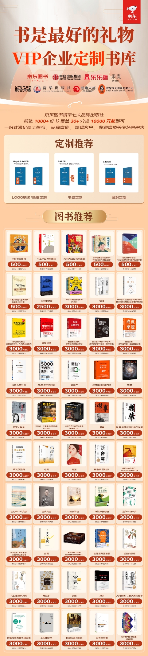 正是基于這些痛點洞察,京東聯(lián)合七大出版社打造了圖書定制化采購服務(wù),為企業(yè)客戶提供圖書封面logo聯(lián)名&貼紙定制、書簽定制、腰封定制等服務(wù),目前已覆蓋了30多個圖書品類、1000種兼具好價與品質(zhì)的暢銷圖書,采購金額1萬元起即可進行定制。有采購需求的企業(yè)客戶只需提出定制要求,即有專業(yè)團隊進行1V1溝通對接,給予客戶定制需求、設(shè)計溝通、印刷裝訂、物流入庫、交付履約、售后服務(wù)的全流程服務(wù)。不論是企業(yè)客戶在節(jié)日節(jié)點推出獨具品牌文化的周邊及贈禮,還是作為企業(yè)給員工的福利,都能讓其感受到京東定制化圖書采購服務(wù)所帶來的優(yōu)質(zhì)體驗。