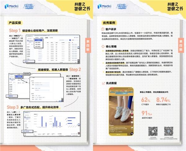 本期的「科普之答案之書」正是以服飾行業(yè)的新品上市營銷節(jié)點為例,品牌結合“數據工廠”中的“標簽工廠”“建模預測”等能力,通過“一鎖定、二擴展、三提效”的經營策略,在雙十一大促節(jié)點準確找到了新品核心用戶和潛在消費者,同時配合品牌動態(tài)創(chuàng)意優(yōu)化,保證在大促期間的投放規(guī)模和投放效率,最終實現了CTR與ROI的大幅度提升。