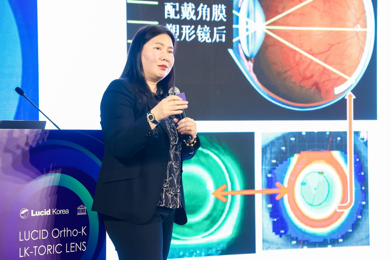 精彩致辭過后楊院長首先帶來課題分享《露晰得差異化設計一近視控制效果與視覺質(zhì)量的兼顧》,從塑形鏡的控制效果和舒適度及良好視覺質(zhì)量上不同的案例進行解析。從控制效果來看,露晰得更穩(wěn)合東方人眼球,越戴越穩(wěn)定;在所有驗配品牌中若用MRT展示視網(wǎng)膜離焦狀態(tài),只有露晰得才能呈現(xiàn)非常理想的離焦狀態(tài);同時在驗配過程中,不能把所有的產(chǎn)品趨于同性化,不能用一個標準去要求它的驗配,露晰得Toric設計的鏡片能夠在不規(guī)則的角膜上獲得較好的定位,因此對于視覺質(zhì)量和穩(wěn)定性都比較好。