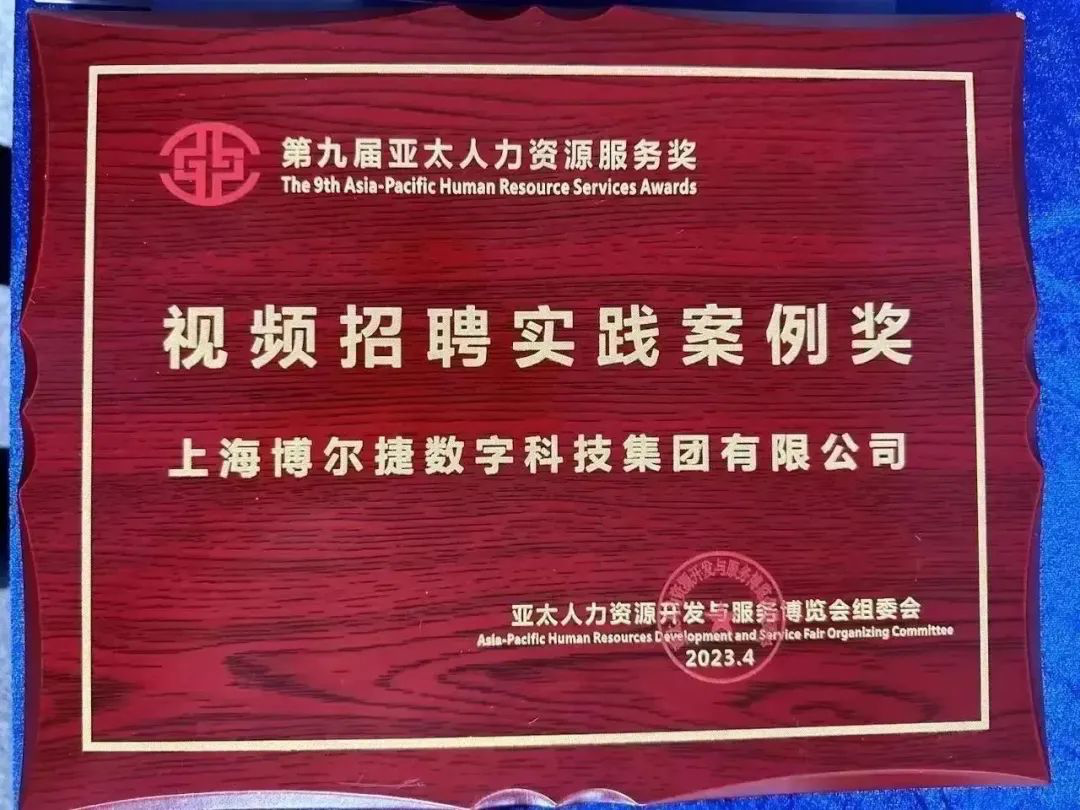 在頒獎(jiǎng)儀式上,博爾捷數(shù)字科技集團(tuán)一攬第九屆亞太人力資源服務(wù)獎(jiǎng)兩項(xiàng)大獎(jiǎng):數(shù)字化應(yīng)用獎(jiǎng)和最佳實(shí)踐案例-視頻實(shí)踐案例獎(jiǎng)。