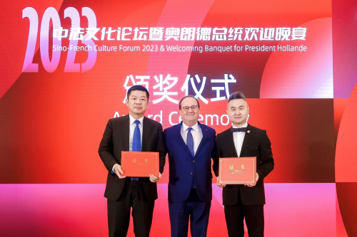 4月28日,由中國未來研究會一帶一路專業(yè)委員會主辦,北京國宏經(jīng)濟(jì)文化發(fā)展研究院承辦的2023中法文化論壇暨奧朗德總統(tǒng)歡迎晚宴在澳門舉行。熱烈祝賀GEMCORé珈蔻榮膺“法國對外友好交流榮譽(yù)品牌”殊榮!熱烈祝賀法國珈蔻國際公司CEO楊建國榮獲“中法友好交流大使”!歡迎晚宴上,奧朗德總統(tǒng)給法國珈蔻國際公司頒發(fā)了榮譽(yù)證書。