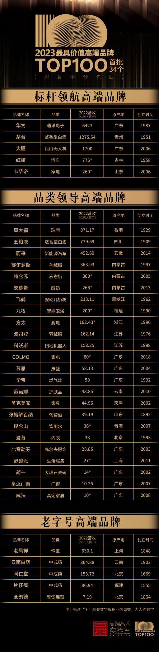 5月11日,由中國(guó)公務(wù)航空集團(tuán)獨(dú)家冠名的“2023最具價(jià)值高端品牌TOP100”榜單正式發(fā)布。這份號(hào)稱“國(guó)內(nèi)首家”的榜單上,茅臺(tái)、華為、卡薩帝、紅旗、慕思、飛鶴等34個(gè)品牌進(jìn)入了TOP100首批名單。