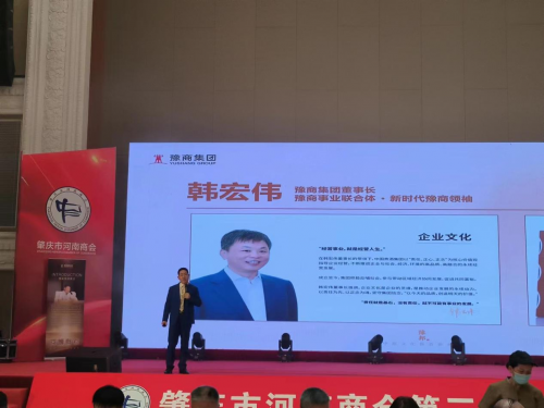 作為本次會議獨家冠名贊助商,上海市河南商會副會長、豫商集團總經理石寶峰致辭。石總首先對肇慶市河南商會的圓滿換屆及尚順發(fā)會長全票當選并連任第三屆會長表示祝賀,并表示很榮幸能和華南地區(qū)各商會負責人、豫商精英共聚一堂,共敘鄉(xiāng)情,對肇慶市河南商會對肇慶和河南兩地經濟社會發(fā)展所做出的貢獻表示認可,同時,深感肇慶市河南商會建立的初衷與豫商事業(yè)的“打造全球豫商圈層共創(chuàng)第一平臺”愿景不謀而合。當前,河南新一輪高水平開放需要匯聚各方力量共同參與,新格局下天下豫商應順勢而為,為了持續(xù)在商業(yè)發(fā)展道路上互相扶持,彼此賦能,共創(chuàng)豫商發(fā)展的新偉業(yè),豫商集團決定以給予大會唯一指定用酒贊助支持。弘揚豫商精神、傳遞中原文化是大家共同的心聲和夢想,豫商集團傾力打造的“中原文化醬香新典范”——豫邦醬酒也得到了與會嘉賓高度贊譽。