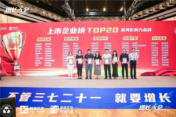 當(dāng)晚,第三屆(2023年)醫(yī)健企業(yè)最具影響力品牌榜頒獎(jiǎng)典禮上,針對(duì)上市企業(yè)及非上市創(chuàng)新企業(yè)的品牌影響力TOP20、及對(duì)非上市企業(yè)的最具增長(zhǎng)潛力TOP10榜單公布?,F(xiàn)場(chǎng)專家們作為頒獎(jiǎng)嘉賓為上榜企業(yè)頒獎(jiǎng),本屆增長(zhǎng)大會(huì)在熱烈氣氛中結(jié)束。