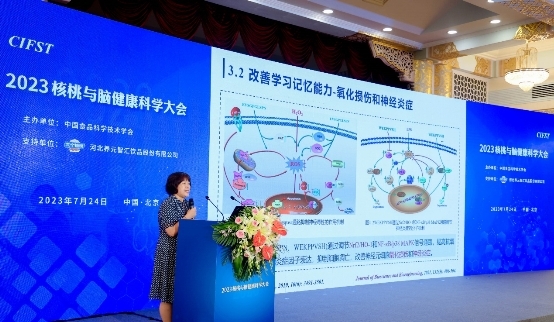 科技強(qiáng)國,腦力先行。核桃是全球四大堅果之一,我國核桃產(chǎn)量占據(jù)全球總產(chǎn)量的半壁江山,為剖析核桃與腦健康科學(xué)的關(guān)系,挖掘核桃功效組分與營養(yǎng)健康科學(xué)內(nèi)涵,共同推進(jìn)我國植物蛋白飲料產(chǎn)業(yè)的高質(zhì)量發(fā)展,7月24日,由中國食品科學(xué)技術(shù)學(xué)會主辦,河北養(yǎng)元智匯飲品股份有限公司支持的2023核桃與腦健康科學(xué)大會在北京召開。與會專家表示,研發(fā)核桃肽等食源性小分子生物活性短肽,具有重要科學(xué)意義和應(yīng)用價值。對于我國產(chǎn)量在全球占據(jù)半壁江山的核桃,食品科技界和產(chǎn)業(yè)界不僅要實現(xiàn)從“砸核桃”到“喝核桃”的食用方式創(chuàng)新,更要探明其功效組分與營養(yǎng)健康的科技內(nèi)涵,助力健康中國。