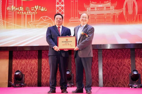 廣州市工商聯(lián)副主席余劍春為理事長(zhǎng)顏龍坤授牌