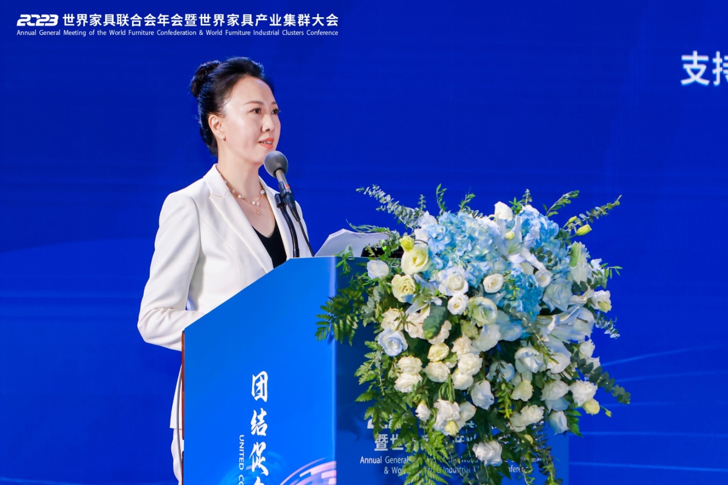 世界家具聯(lián)合會主席、亞洲家具聯(lián)合會會長、中國家具協(xié)會理事長徐祥楠發(fā)表《團結(jié)促合作,攜手創(chuàng)未來》的主旨講話。他指出,世界正在全面復(fù)蘇,時代變革加速演進,家具行業(yè)已形成國際深度合作、地區(qū)廣泛協(xié)同的產(chǎn)業(yè)格局。未來,世界的競爭將由企業(yè)、行業(yè)、產(chǎn)業(yè)鏈之間的競爭演變?yōu)楫a(chǎn)業(yè)集群和產(chǎn)業(yè)生態(tài)之間的競爭,產(chǎn)業(yè)集聚化是制造業(yè)結(jié)構(gòu)調(diào)整和轉(zhuǎn)型升級的必由之路。中國家具協(xié)會在各國會員的支持下,發(fā)起中國東莞世界級家具產(chǎn)業(yè)集群項目,打造世界“工業(yè)制造”之都、“集群示范”之都、“展覽貿(mào)易”之都、“智慧管理”之都、“設(shè)計創(chuàng)新”之都、“跨境電商”之都,為促進跨國合作、共享產(chǎn)業(yè)資源搭建國際公共平臺。世界家具聯(lián)合會也將基于國際網(wǎng)絡(luò),以龐大的產(chǎn)業(yè)規(guī)模、完善的創(chuàng)新能力、開放的生態(tài)模式,支持各國集群建設(shè)工作,促進發(fā)達制造與新興制造相結(jié)合,推動全球家具行業(yè)邁入先進制造之列,讓各國切實享受到全球化帶來的普惠成果,并同各方一道,團結(jié)凝聚更多產(chǎn)業(yè)共識,朝著構(gòu)建高質(zhì)量伙伴關(guān)系的正確方向攜手奮進,共同譜寫繁榮發(fā)展新篇章!