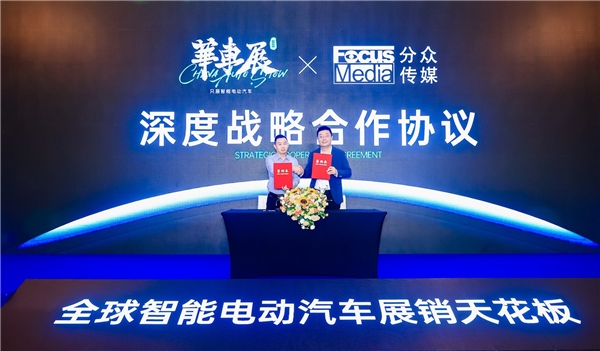 發(fā)布會現(xiàn)場,還進(jìn)行了CAS華車展與分眾傳媒深度戰(zhàn)略合作簽約儀式,華墨集團(tuán)CEO王國平與分眾傳媒董事長江南春共同簽署了“助力全球智能電動汽車品銷雙贏”戰(zhàn)略合作。