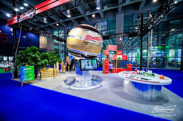 百威作為可持續(xù)發(fā)展的先行者,本次展臺遵循綠色低碳的設計理念,采用更具可持續(xù)性的材料分展區(qū)展示百威在ESG策略、綠色生產(chǎn)和綠色物流、水資源管理、智慧農(nóng)業(yè)、循環(huán)包裝等方面的豐碩成果。其中地球形狀的循環(huán)裝置采用了由百威啤酒糟回收制作而成的植物基皮革、環(huán)保紙等可回收再生的包裝材料,整體布局風格充分體現(xiàn)了"綠動未來"的參展主題特色。一直以來,百威將可持續(xù)發(fā)展理念貫穿業(yè)務始終,憑借極具前瞻性的戰(zhàn)略目標,配合強大的本土執(zhí)行能力,在本屆盛會交出了一份亮眼的綠色發(fā)展"成績單",吸引眾多嘉賓觀眾駐足參觀交流。