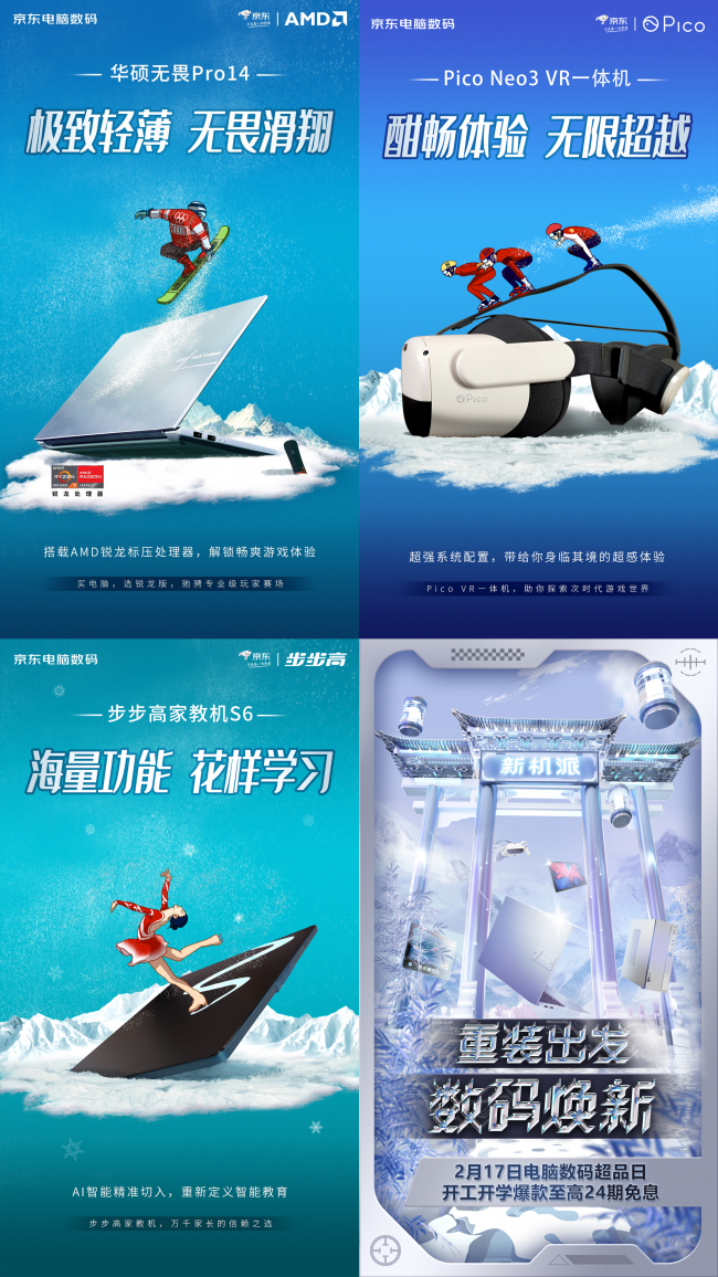 在整個活動預熱過程中,通過平臺資源的整合利用,串聯(lián)傳播鏈,達到充分引流造勢的效果,不僅引發(fā)熱度,更使用戶們充分感受到此次京東電腦數(shù)碼開年活動帶來的盛大福利狂歡,同時也借此實現(xiàn)潛在用戶的更大范圍觸達。